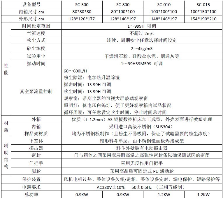 可編程控制器可分別對吹塵風機、粉塵振動和總的試驗時間進行單獨或集體的時間控制。試驗時間最大為99小時59分。箱內風速可調(通過變頻器自動調節)